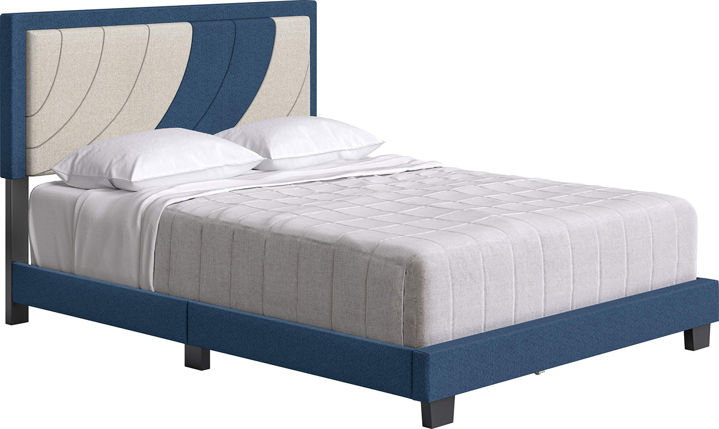Boyd Sleep Sail Away Upholstered Platform Bed with Headboard and Durable Mattress Foundation with Strong 14 Wood Slat Supports, No BoxSpring Required: Twin, Blue/White