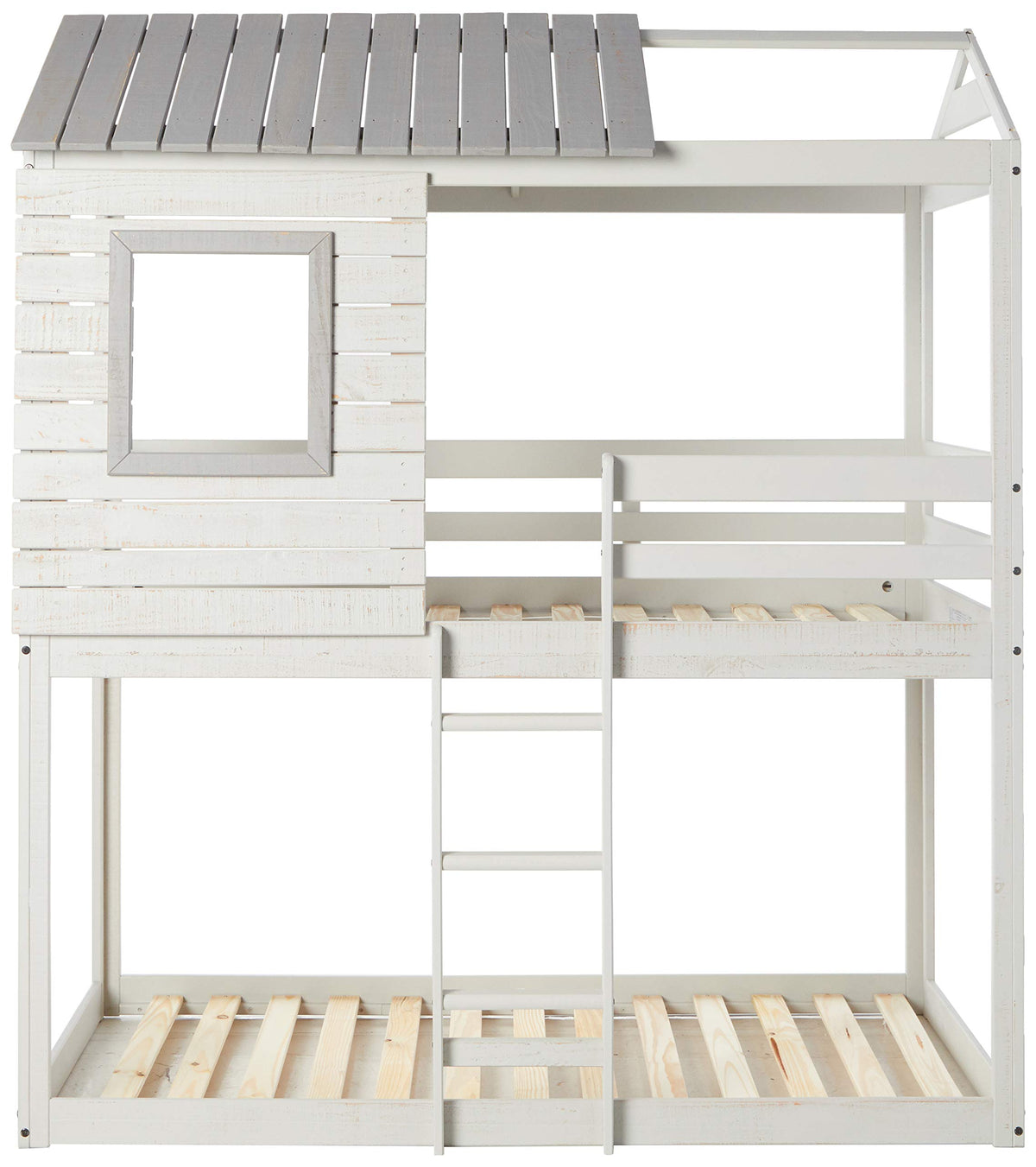 This Donco Kids Twin/Twin Deer Blind Bunk Loft Bed, Light Grey Measures 77" Length X 43" Width X 90" Height.