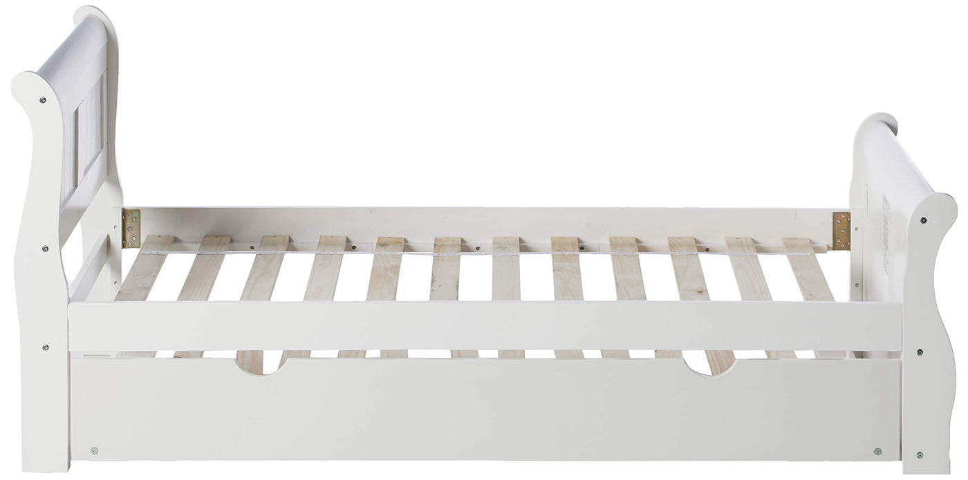 This Donco Kids Twin Sleigh Bed with Twin Trundle Bed, White measures 84" length x 42" width x 42" height.