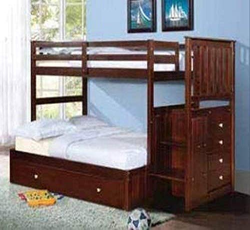 This Donco Kids Twin/Full Mission Stairway Bunk Bed With Twin Trundle, Dark Cappuccino Measures 98" Length X 59" Width X 65" Height.