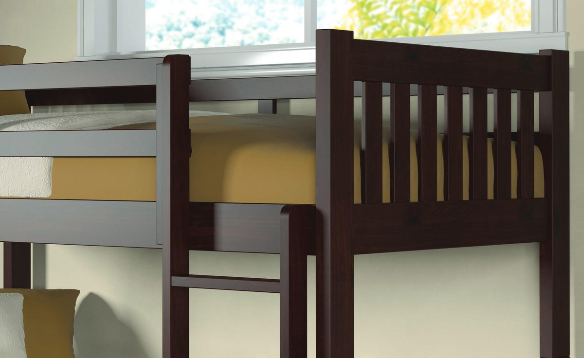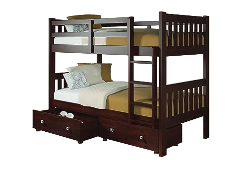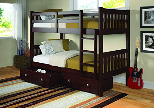 When Your Child Is Ready For Bed, The Donco Kids Austin Mission Twin Over Twin Cappuccino Bunkbed With Dual Underbed Drawers Is Ready For The Job. This Bunkbed Provides Great Option For Sleepovers, Siblings Sharing A Room, Or Guests. Added Dual Storage Drawers Included For Additional Storage Options. Sporting A Cappuccino Finish And A Solid Pine Wood Construction, This Bunkbed Has A 220 Lb Weight Capacity For Each Mattress And Meets Or Exceeds The Federal Safety Standards For Children'S Furniture. For Three Generations, Donco Kids Has Been Known For Sturdy Design, Safety, And Fun Kid-Centered Products. Specializing In Children’S Beds Has Been At The Heart Of The Donco Kids Business For Over Thirty Years.