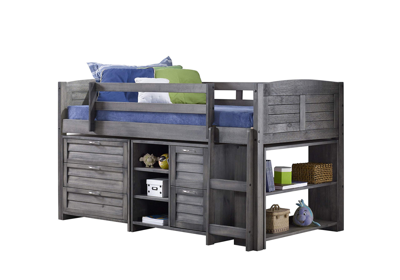 Twin Louvered Low Loft, This Bed Allows For A Large Open Play Area Under The Bed Or Storage Area. Twin Louvered Low Loft Bed. Open Under Bed Area. Mattress Ready Slat System.