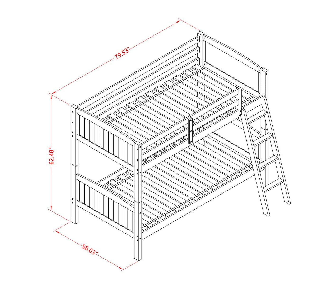 East West Furniture - Ayb-05-Tu - Bunk Bedthe Albury Twin Bunk Bed Is An Excellent Space-Saving Solution For Your Home, Capable Of Being Split Into Two Twin Beds When Needed. Its High-Quality, Durable Solid Wood Structure Provides Reliable Support Without Requiring A Box Spring Thanks To The Built-In Slats. Assembly Is Effortless With The Included Detailed Instructions. Designed With Safety In Mind, This Bunk Bed Features Full-Length Guardrails And A Built-In 4-Step Ladder. The Wooden Twin Bed Frame Compact Design And White Finish Make It A Great Fit For Any Children'S Room, Dormitory, Or Apartment. Maintenance Is Easy And Minimal, With Simple Cleaning Achieved By Spraying With Water And Wiping Out Stains With A Cloth. The Bottom Trundle Provides Additional Space For An Extra Mattress Or Serves As A Storage Area To Help Keep Your Living Space Clean And Organized.Product Features: Product Type: Bunk Bed Frame Material: Solid Wood Bed Size: Twin Box Spring Required: No Slat Kit Included: Yes Guardrails Included: Yes Built-In Ladder Included: Yes Trundle Bed Included: Yes Color: Linen White Bunk Bed Dimension: Length: 79.53; Width: 58; Height: 62.48.Include: A Beautiful Buk Bed With Trundle