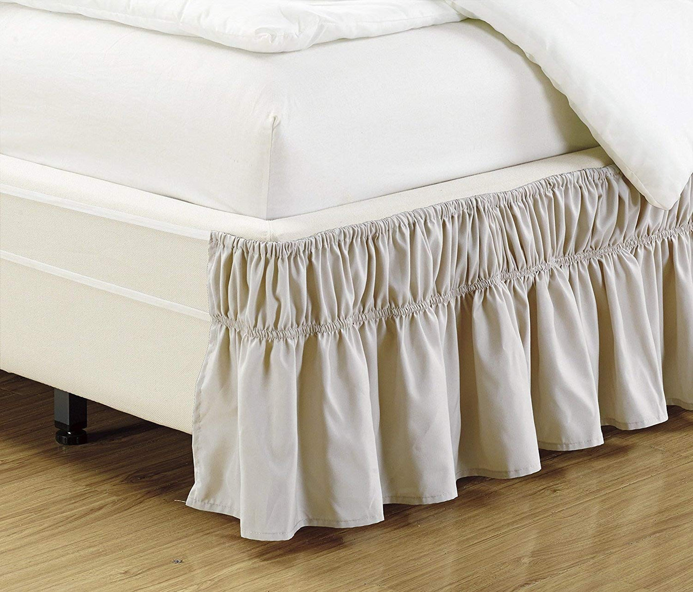 Fancy Collection Twin - Full Easy Fit Bed Ruffle Wrap Around Elastic Bed Skirt With 17' Drop New Easy Install Solid Beige