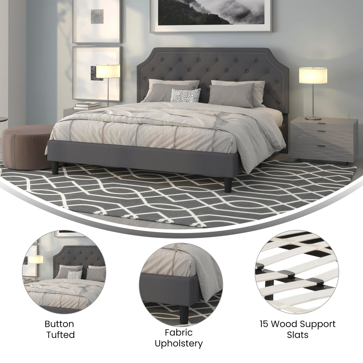 Flash Furniture Brighton King Size Tufted Upholstered Platform Bed In Dark Gray Fabric