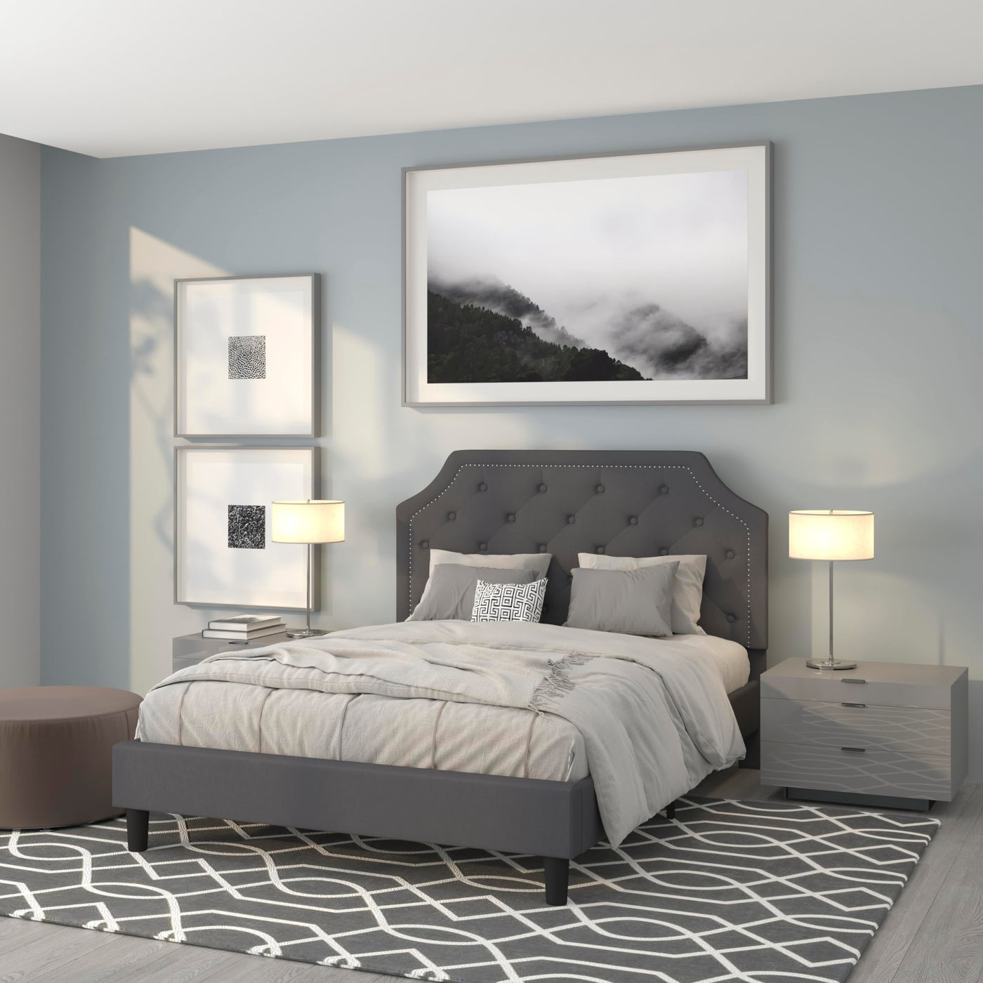 Flash Furniture Brighton Queen Size Tufted Upholstered Platform Bed In Dark Gray Fabric