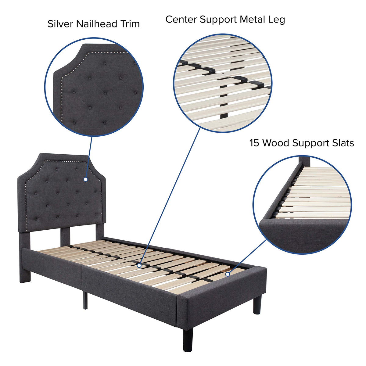 Flash Furniture Brighton Twin Size Tufted Upholstered Platform Bed In Dark Gray Fabric