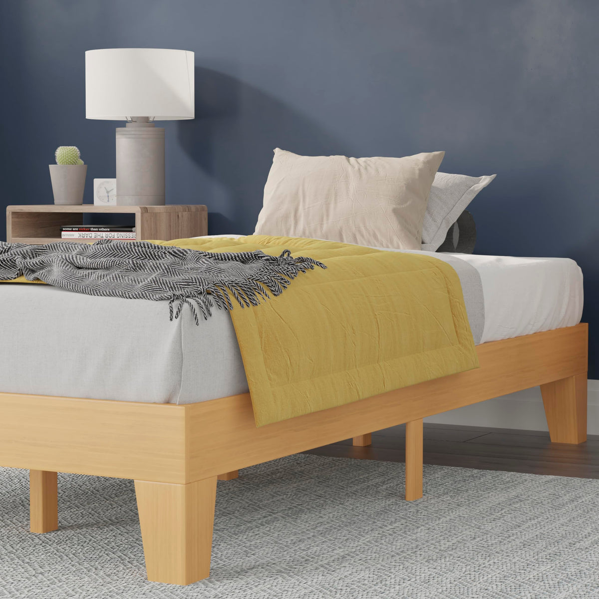 Flash Furniture Evelyn Wooden Platform Bed - Natural Pine Finish - Twin - Wooden Slat Support - No Box Spring Required - Easy Assembly
