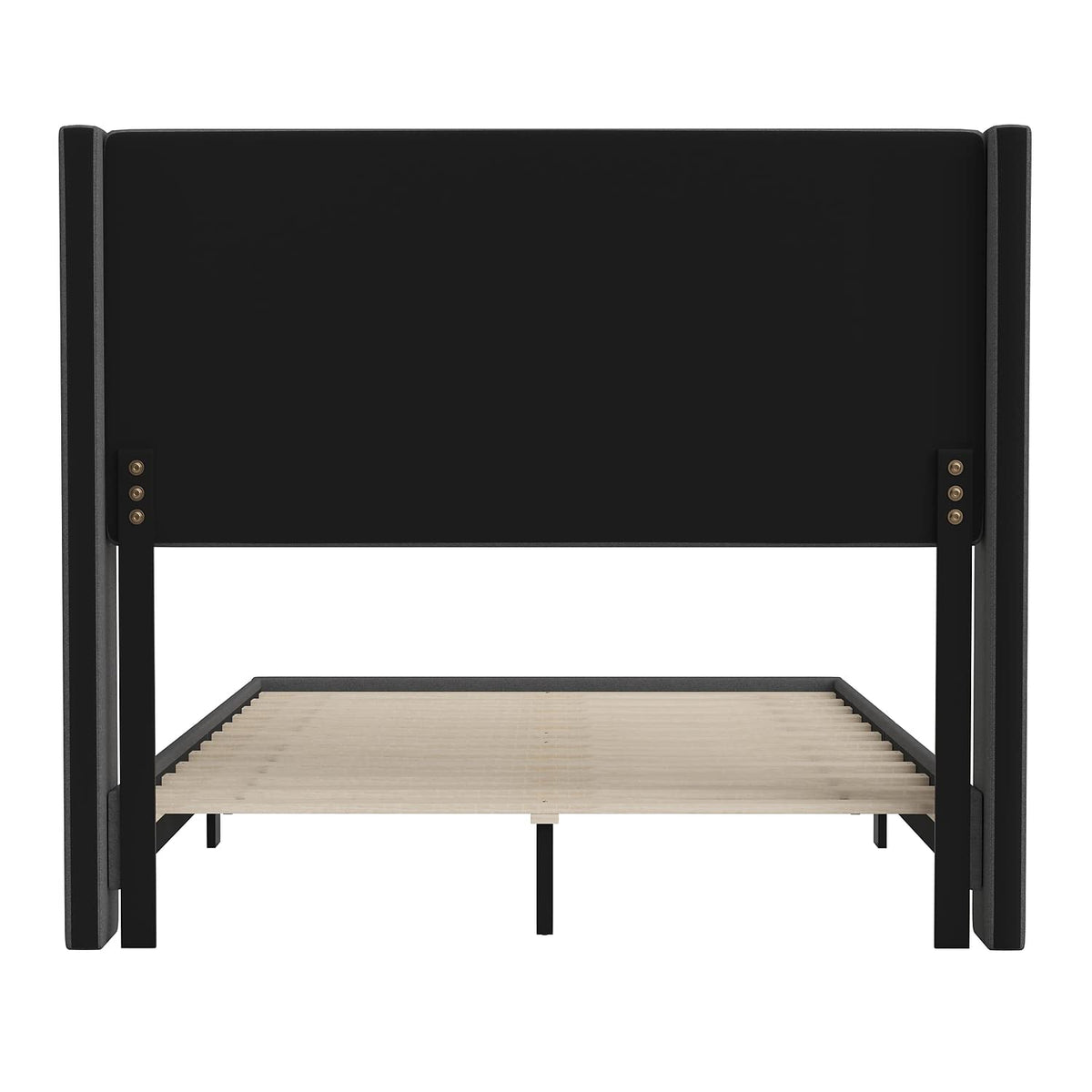 Flash Furniture Hollis Upholstered Platform Bed - Charcoal Faux Linen Wingback Headboard - Full - Mattress Foundation with Slatted Supports - No Box Spring Needed