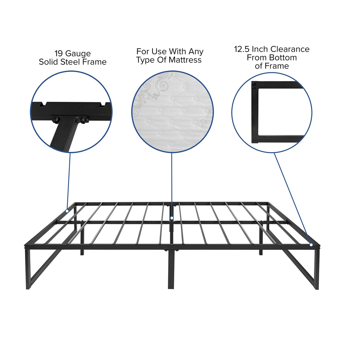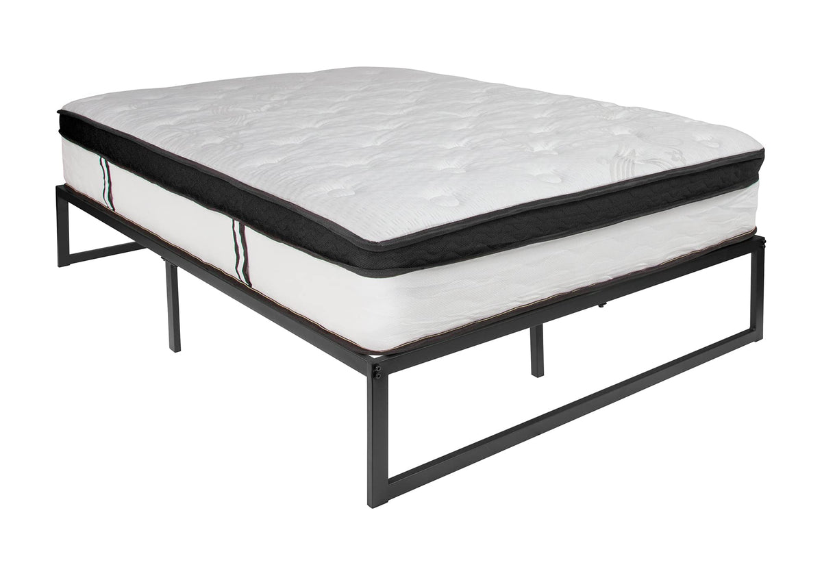 If you need a new bed set, but you don't want to go out shopping for furniture or hassle with getting it home from the store, just take the easy route and have everything delivered right to your door. This platform bed frame with mattress included has everything you need for a great nights sleep and you never have to leave home. Quality and convenience are essential for the modern lifestyle and this bed frame foundation with mattress set features a 14" freestanding metal platform bed frame offering 12.5 inches of clearance for storage and ease of cleaning. Constructed from 19 gauge solid steel with reinforced metal screw construction this frame will support up to 650 pounds. Solid steel slats hold the included 12" memory foam and pocket spring mattress without sagging and does not require a box spring. The lack of a headboard or footboard streamlines any sleep space and will lend vertical real estate to smaller bedrooms. Last, but definitely not least, this complete bed set bundle gives you the mattress of your dreams. This medium-firm memory foam mattress features individually wrapped pocket spring coils for exceptional support and reduced motion transfer under a top layer of memory foam to alleviate pressure points to help you stay asleep. The foam is CertiPUR-US Certified so it's free from heavy metals, phthalates, BPDE, formaldehyde and has reduced VOCs. Arriving compressed and boxed for ease of movement, this hybrid mattress will fully expand with 48 to 72 hours. Give yourself the gift of better sleep and a new look for your bedroom with the touch of a button when you order this complete memory foam mattress and bed frame set.