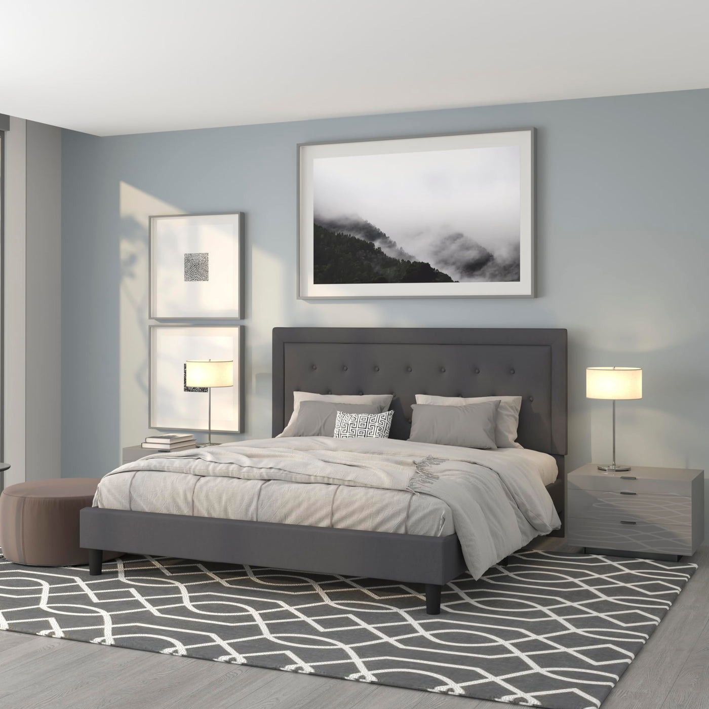 Flash Furniture Roxbury King Size Tufted Upholstered Platform Bed In Dark Gray Fabric