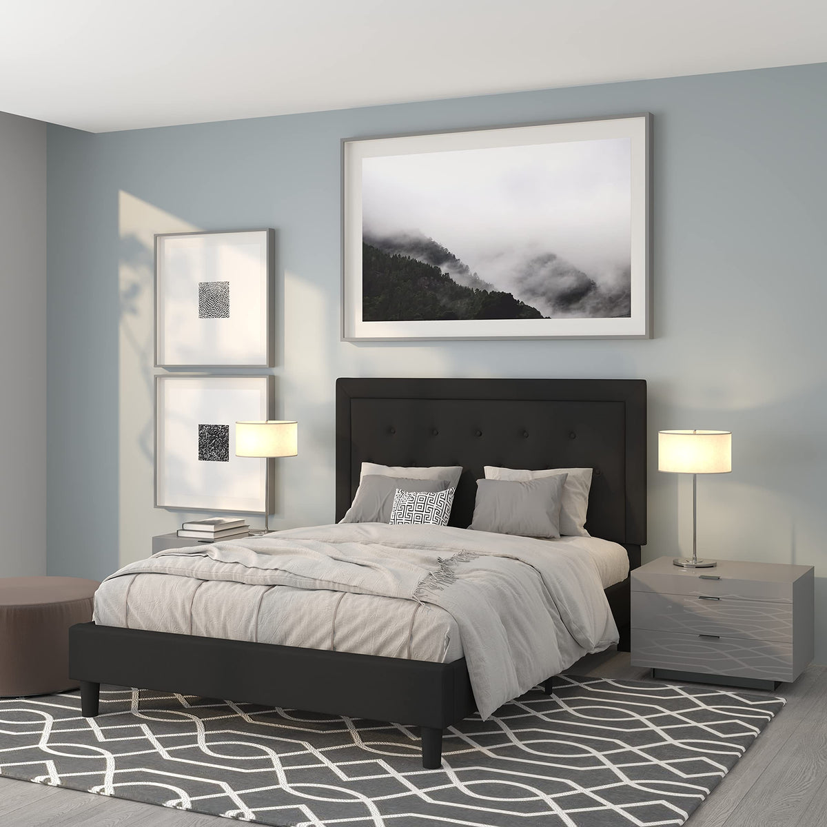 Flash Furniture Roxbury Queen Size Tufted Upholstered Platform Bed In Black Fabric