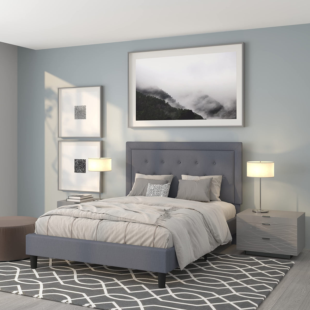 Flash Furniture Roxbury Queen Size Tufted Upholstered Platform Bed In Light Gray Fabric