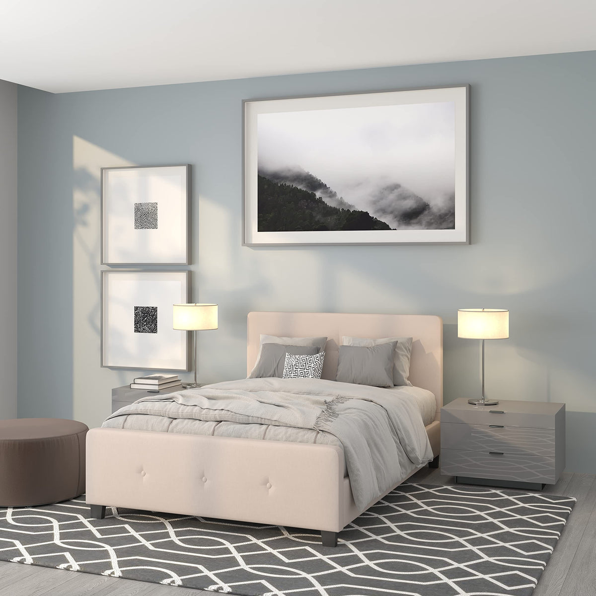 Flash Furniture Tribeca Full Size Tufted Upholstered Platform Bed In Beige Fabric