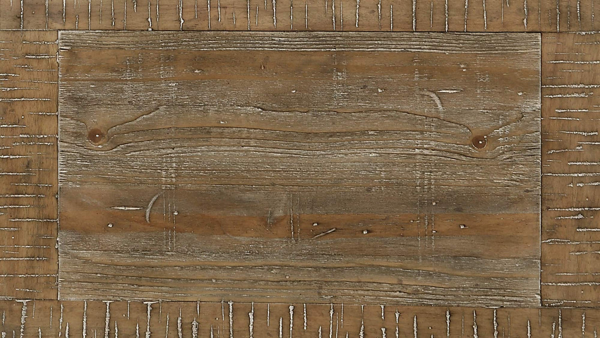 Madrona Burke Queen Eleanor Sandstone Buff and Cream Bed with Weathered Wood Framing and Curved, Upholstered Headboard and Footboard Panels