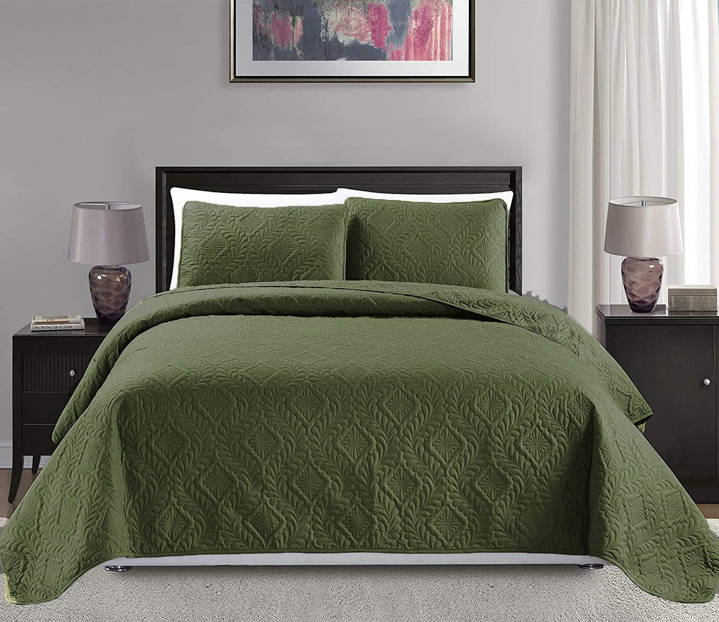 Mk Collection Full/Queen Size Over Size 100'X106' 3Pc Diamond Bedspread Bed-Cover Embossed Solid Olive Green New
