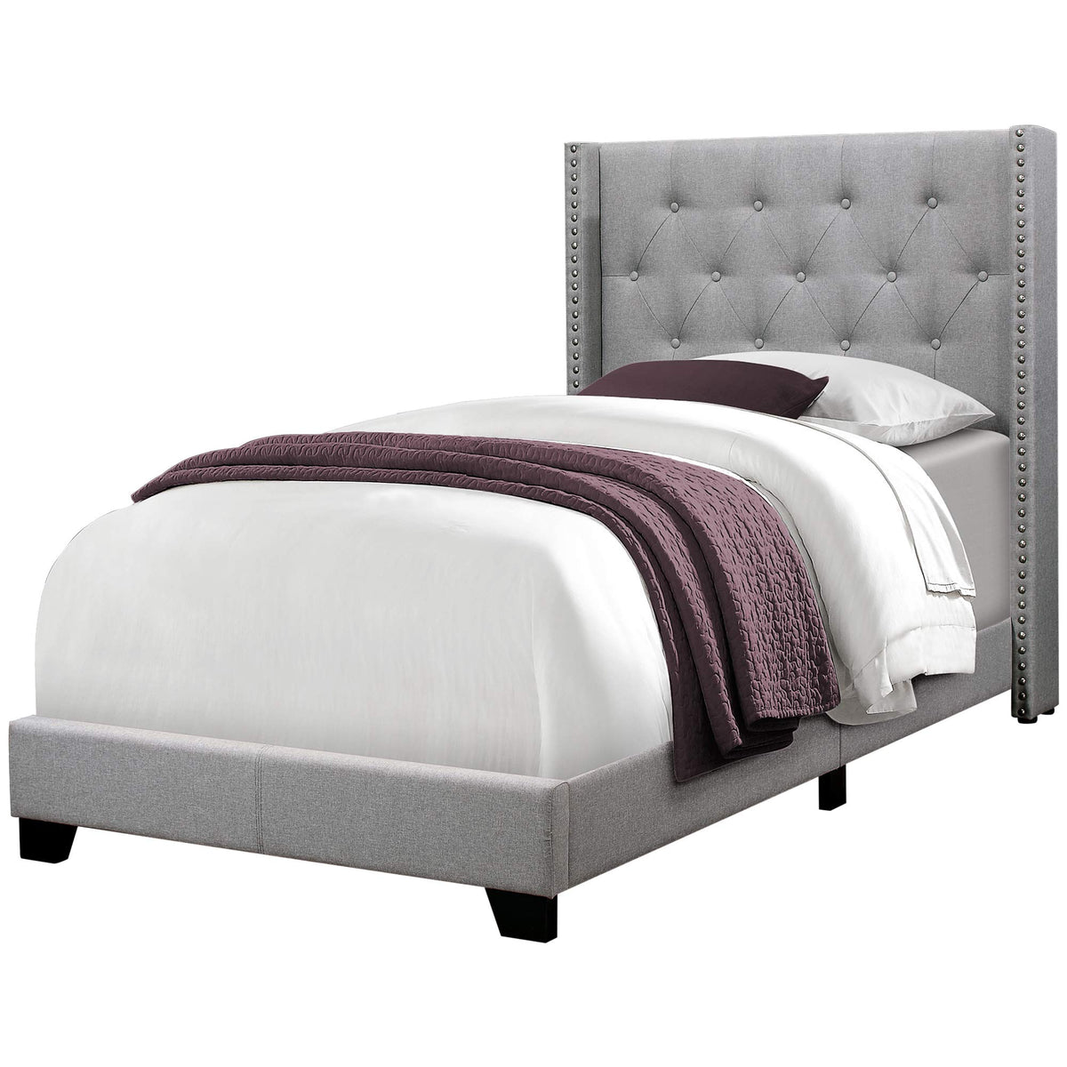 Monarch Specialties I Size/Grey Linen with Chrome Trim Twin Bed, Double,