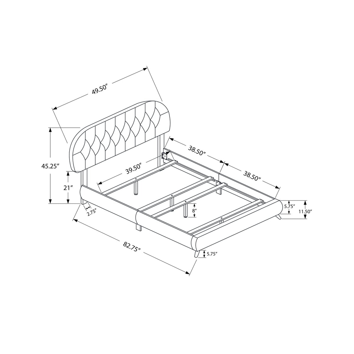 Monarch Specialties I Twin Size/Grey Linen with Brown Wood Legs BED, BEIGE