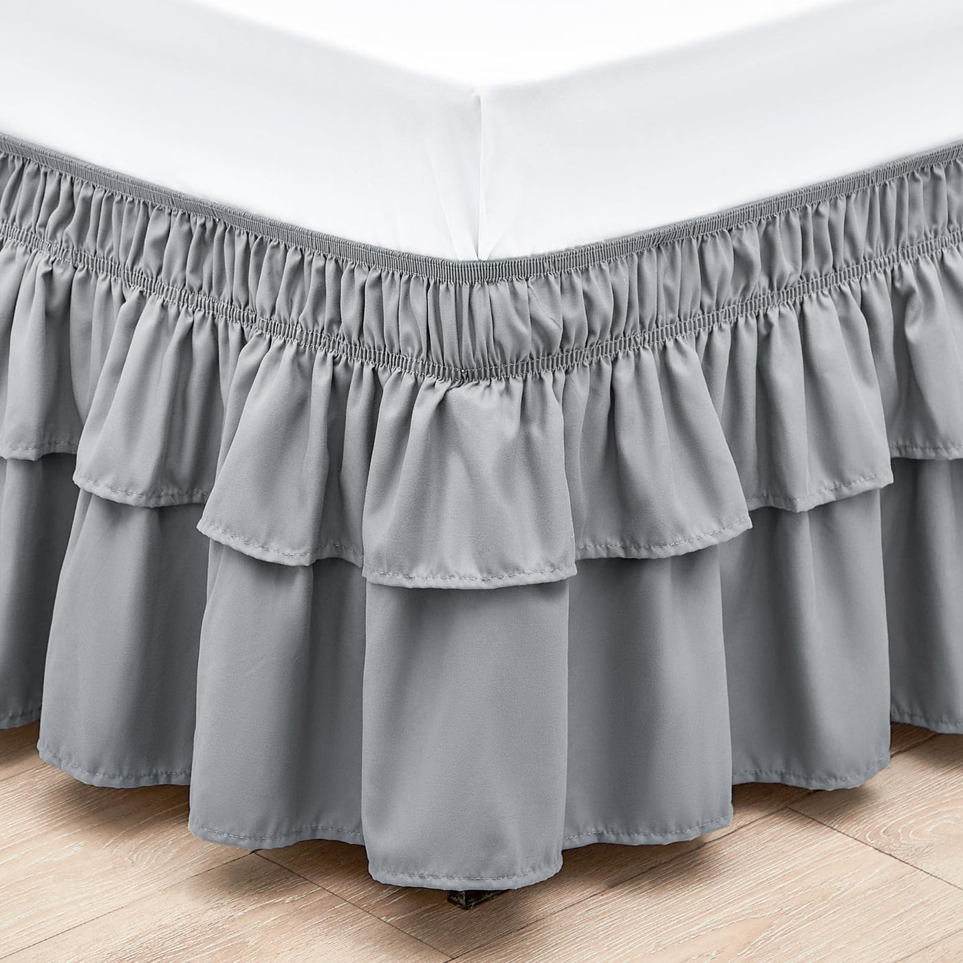 Rimela Ruffle Bed Skirt Light Grey Queen 16 Inch Drop, Elastic Wrap Around Bed Skirting Queen Size, Easy To Install Dust Ruffle,