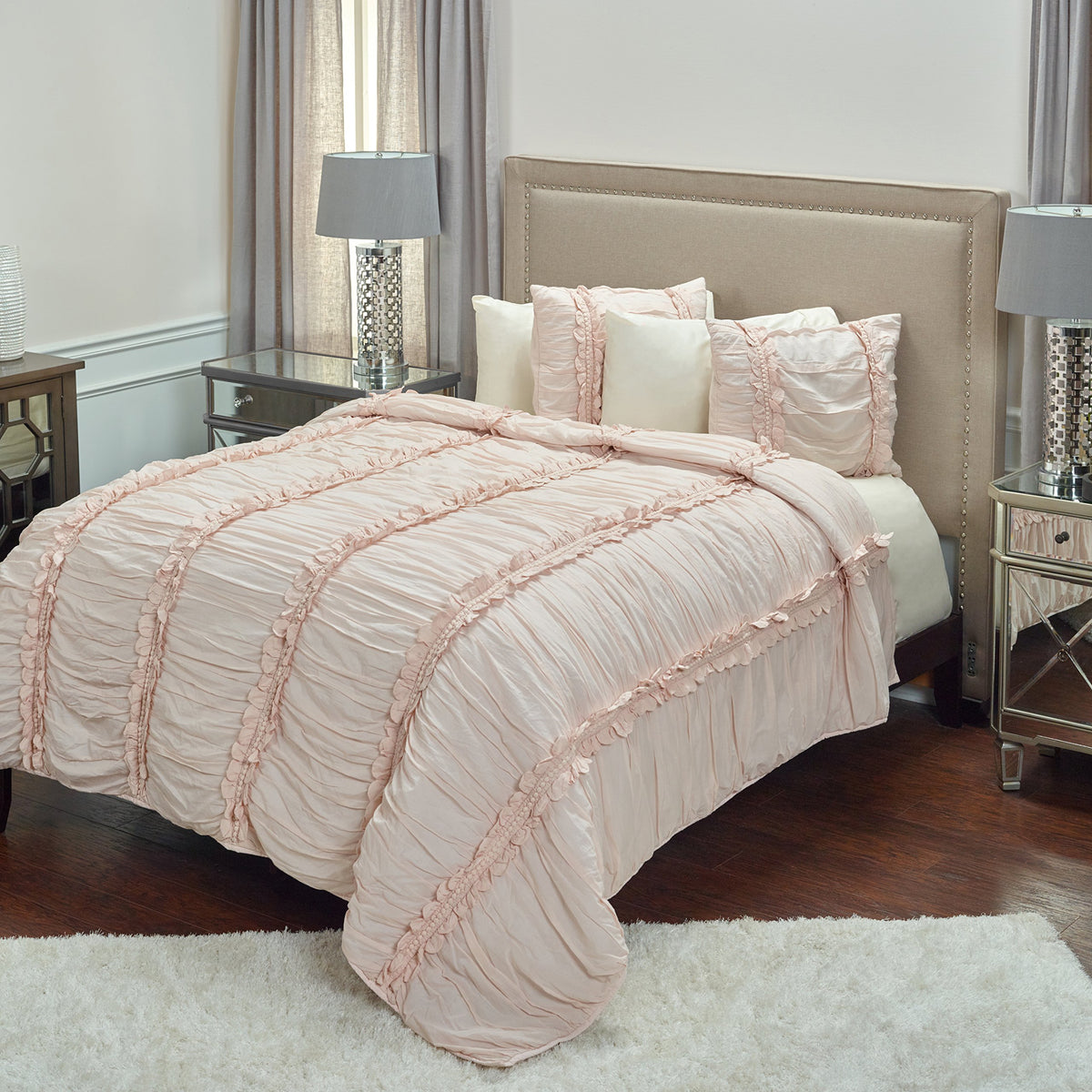 Rizzy Home | BQ4174 | Polyester Quilt | 70"x86" Pink/Neutral/ Solid With Cording