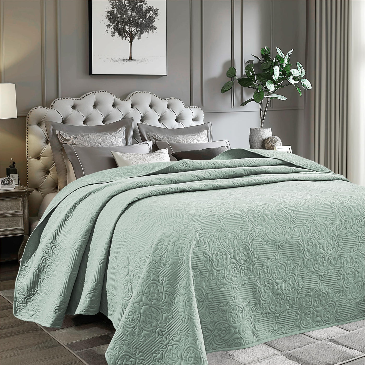 Sophia & William Bed Quilt Bedspread Coverlet - Reversible, Lightweight - Queen Size, Sage
