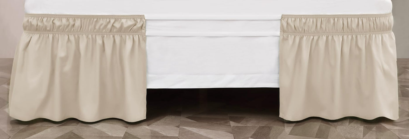 Toodou Easy To Install Wrap Around Bed Skirt Three Fabric Sides Elastic Dust Ruffled 16 Inch Tailored Drop, Fade Resistant-Beige
