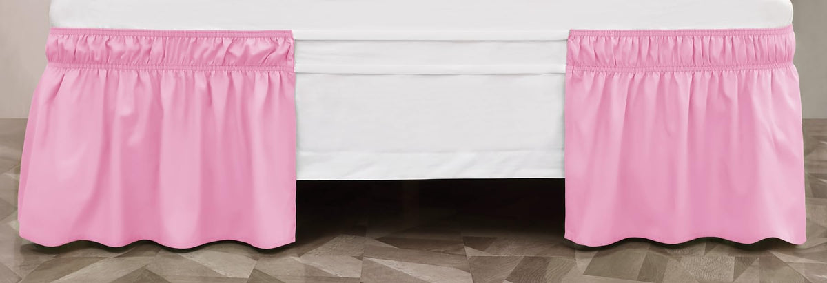 Toodou Wrap Around Ruffled Twin Bed Skirt With Elastic Belt, Pink Bedskirt 16 Inch Drop Easy To Put On