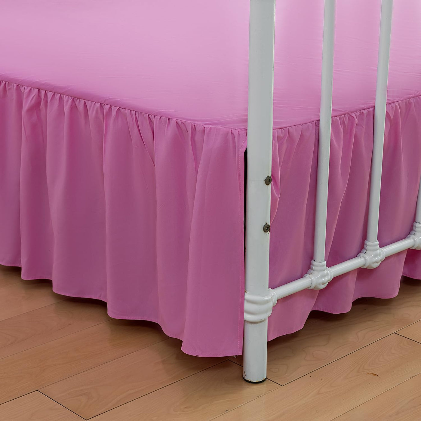 Specifications: Size: Twin(39 X 75 Inches) Drop: 14 Inch Color: Pink Weight: 420G Features: Bed Skirt With Split Corners For Beds With Foot Boards Or Bed Posts With 3 Sides Ruffles, Looking Simple And Stylish Coming With A Platform To Keep The Bedskirt In Place Package: 1 X Ivory Ruffled Bed Skirt Twin Size With Platform