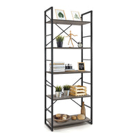 Caphaus 5 Tier Bookshelf, 24 Inch Width Free Standing Shelf, Bookcase Shelf Storage Organizer, Industrial Book Shelves For Home Office, Living Room, Kitchen, Dark Grey Vintage Shelves & Metal Frame