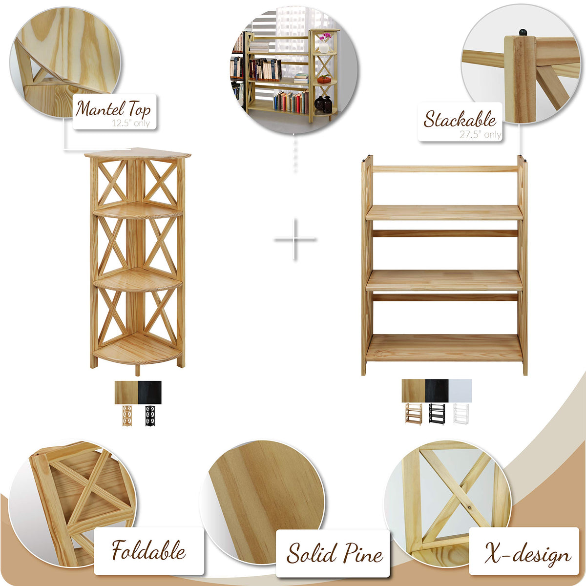 Sturdy And Stackable, The X-Design 3-Shelf Folding Bookcase Is Ideal For Any Home Decor. Stackable Design Allows Your Storage And Home Design To Grow When You Need Them To. Effortless Foldable Engineering Means You Can Transport Or Store With Ease. Constructed From Solid Wood For Lasting Beauty.