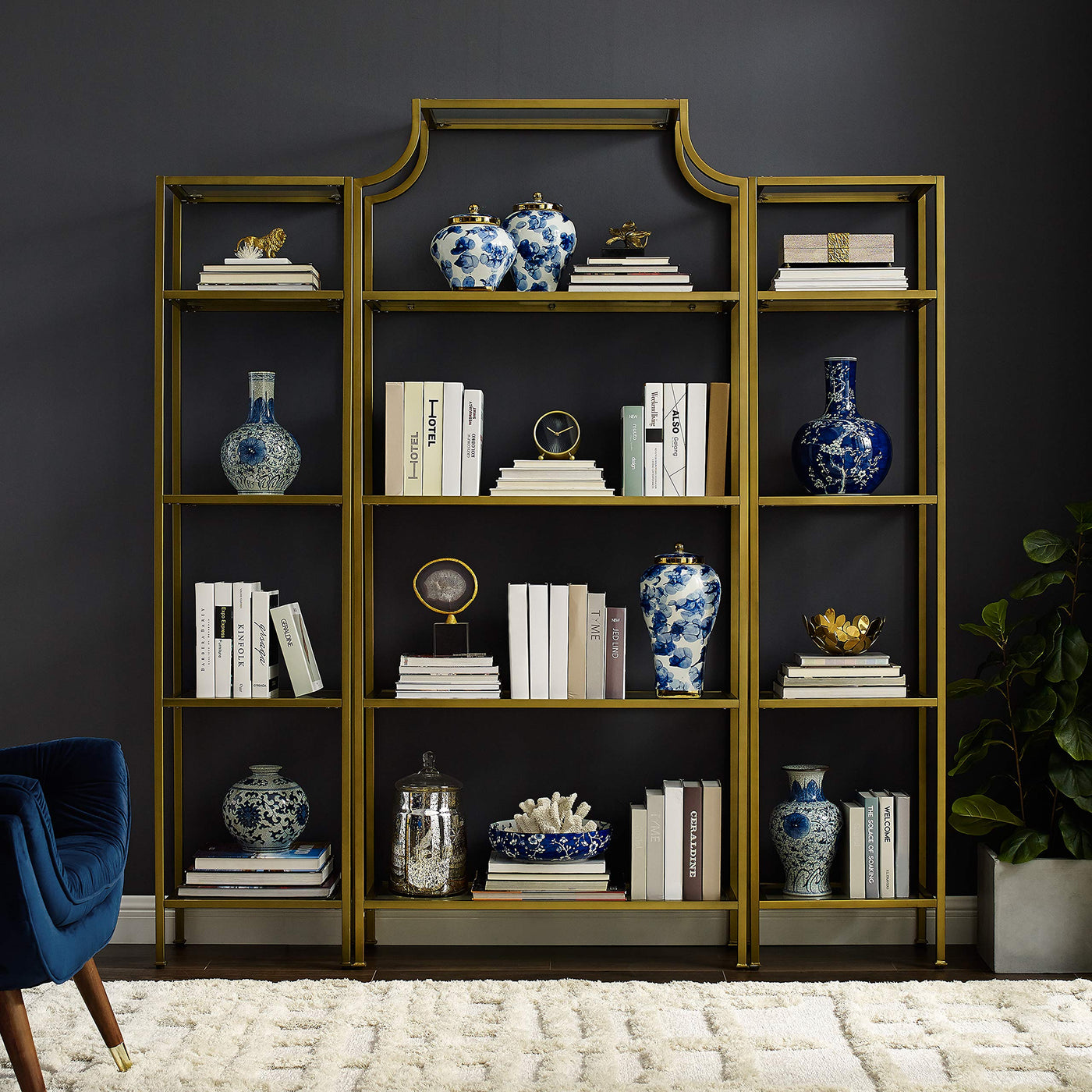Crosley Furniture Aimee 3-Piece Bookshelf Set with Glass Shelves, Bookcase Storage, Gold and Glass