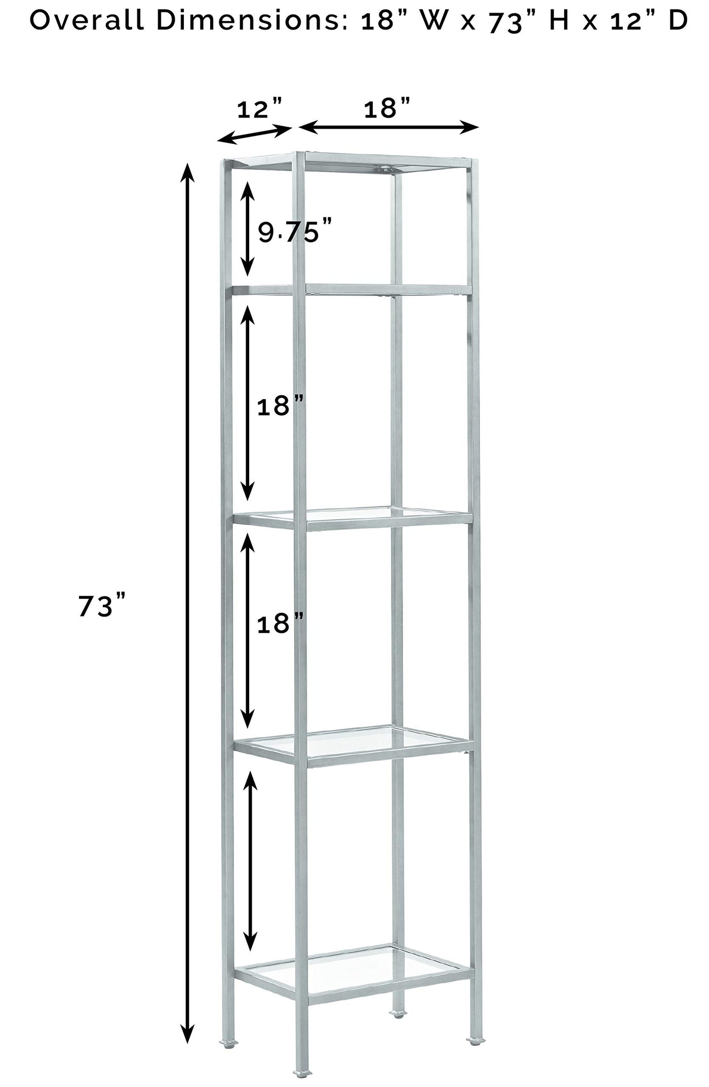 Stylish and modern, the Aimee Narrow Étagère is an eye-catching addition to any home. With a sturdy yet sleek steel frame, the Aimee Étagère can be paired with a variety of décor. The open, tempered glass shelves of the étagère are perfect for display and organization without overwhelming the room.