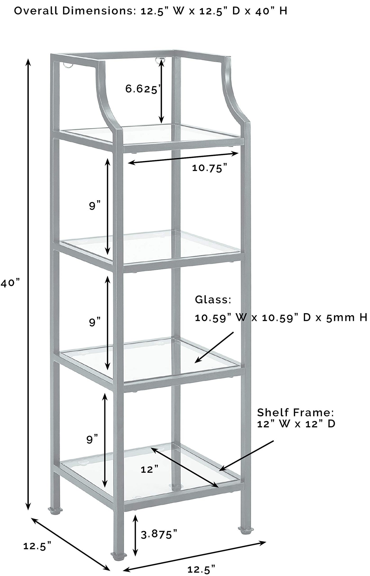 Stylish And Modern, The Aimee Short Étagère Is An Eye-Catching Addition To A Bathroom Or Home Office. With A Sturdy Yet Sleek Steel Frame, This Etagere Can Store Bath Items Like Towels And Toiletries Or Books And Decor For A Home Office. The Open Tempered Glass Shelves Of The Étagère Offer Organization Without Overwhelming The Room.