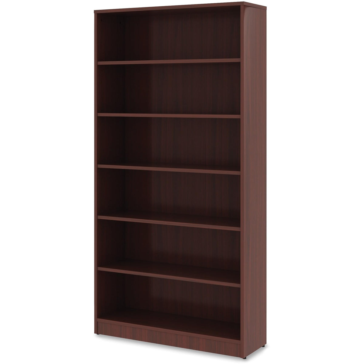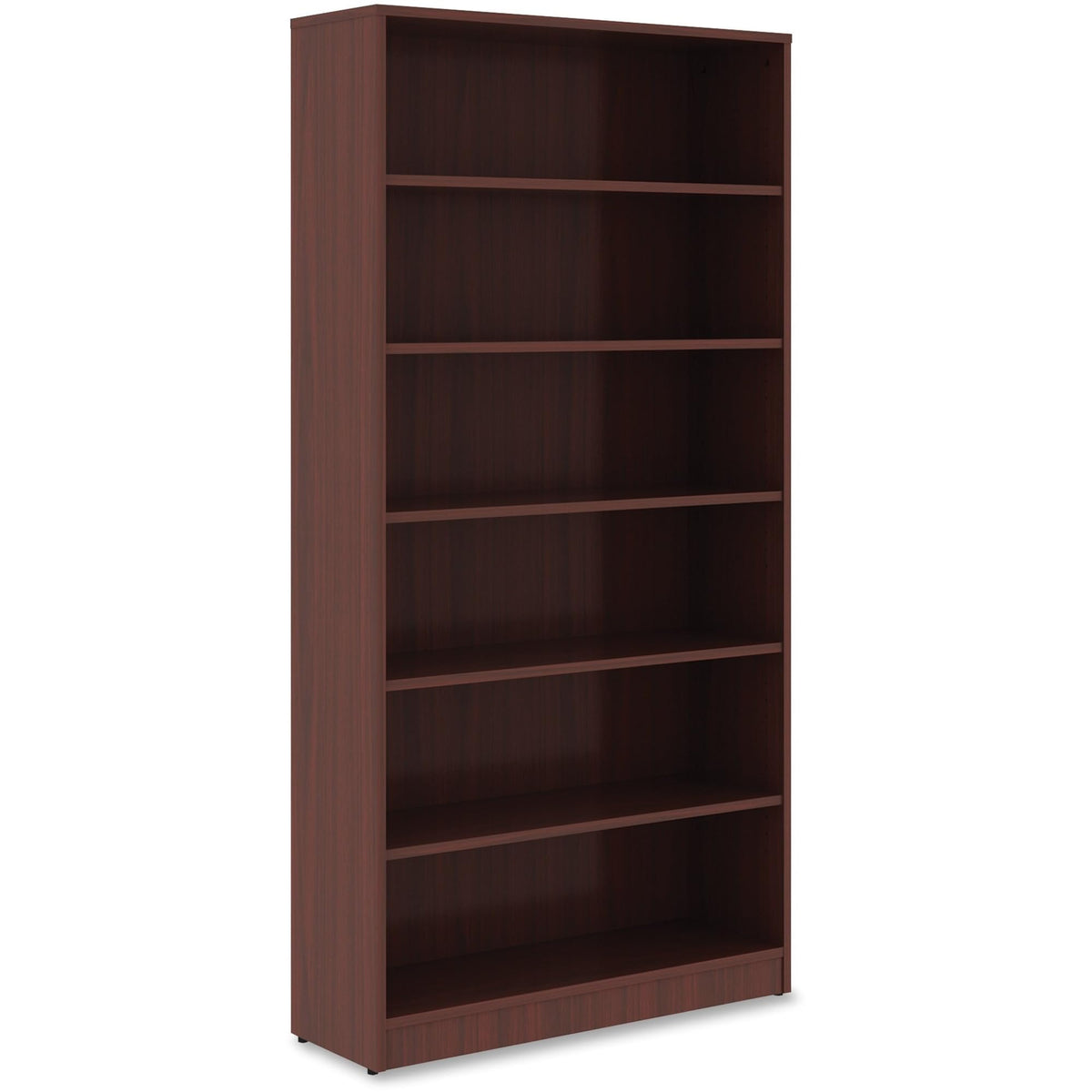 Sturdy Bookcase Offers High-Quality Laminate Construction And A Contemporary Design. Shelves Are 3/4" Thick And Made With Thermally Fused, Mahogany Laminate For Long-Lasting Use. The Visible, One-Piece Backing Behind The Shelves Is Made With Matching Laminate. Both Sides Are Finished. Bookcase Features Adjustable Shelves, One Fixed Bottom Shelf, Square Edges And Adjustable Feet. Each Shelf Holds Up To 75 Lb.