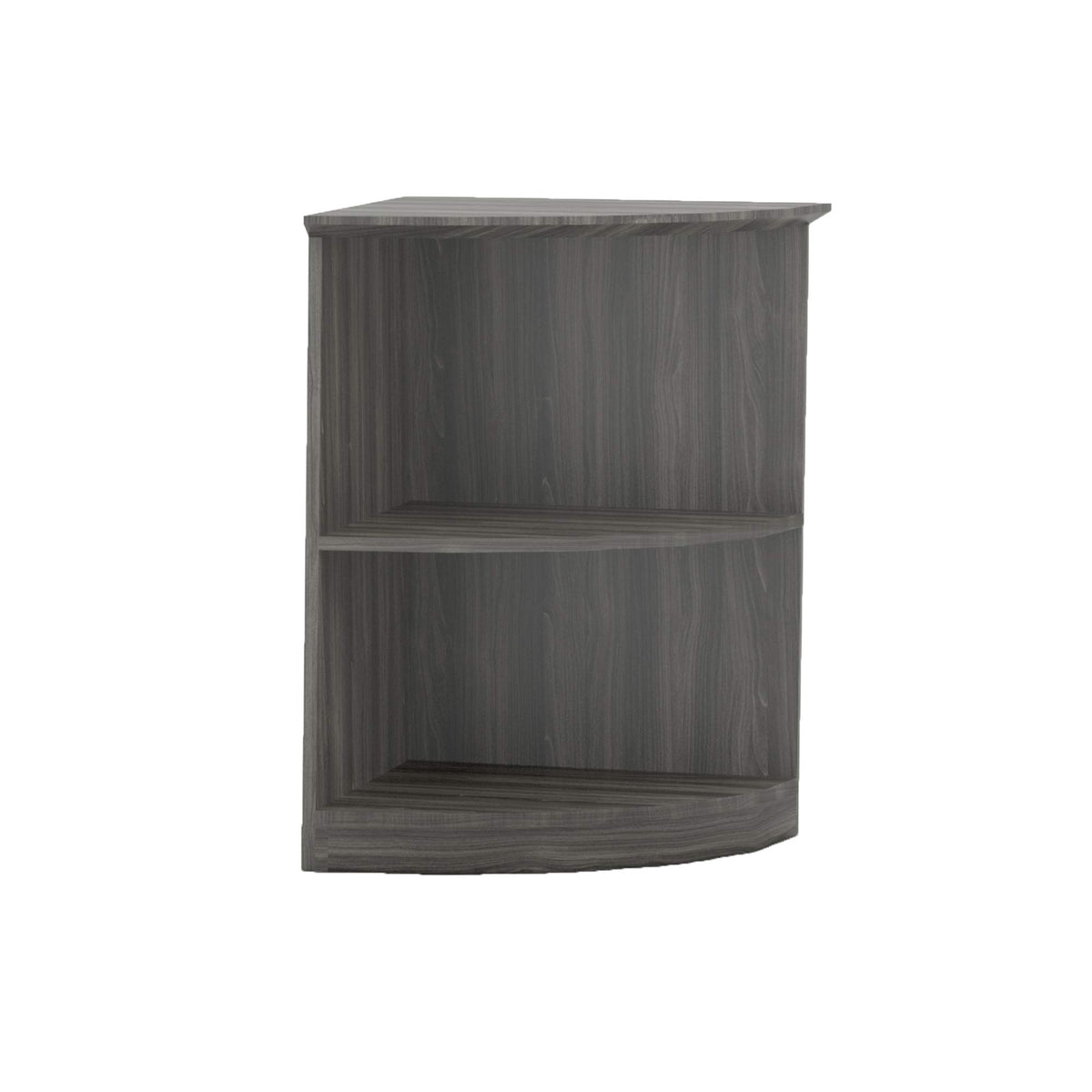 Easily Turn A Small Open Space Into Storage Space With The Compact Medina 2 Shelf Quarter-Round Bookcase. With A Small Footprint, Rounded Front, And Right Angle At The Back, The Medina 2 Shelf Quarter-Round Bookcase Is Perfect For Placing In An Empty Corner Or Adding A Contoured End To A Medina Low Wall Cabinet (Mvlclgs). One Fixed Lower Shelf And One Adjustable Center Shelf Each Measure 1" Thick And Hold Up To 25 Lbs. Of Evenly Distributed Weight, Allowing You To Load Your Books And Binders With Confidence. The Durable, Scratch- And Stain-Resistant Laminate Finish Helps To Reduce The Chance That A Sliding Book Or Tipping Binder Leaves A Permanent Impression On The Surface Of A Shelf. Available In One Of Five Sophisticated Color Options To Suit Your Unique Style, Including Textured Sea Salt, Textured Brown Sugar, Mocha, Mahogany Or Gray Steel, The Medina 2 Shelf Quarter-Round Bookcase Coordinates With The Entire Medina Series Of Desking, Conference And Reception Furniture, So You Can Create A Complete, Cohesive And Professional Office Environment.