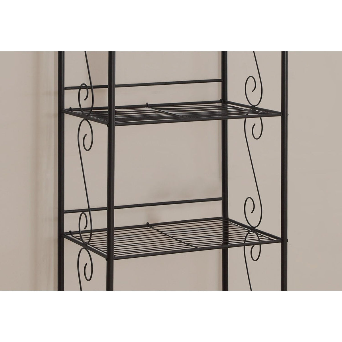 This Elegant Metal Etagere Offers A Distinctive Storage Solution That Will Blend In Any Room Of Your Home. Featuring A Scroll Motif In Copper Metal, This Piece Provides Four Shelves That Offer An Abundance Of Storage Space For Picture Frames, Plants, Candles And Any Other Collectibles.