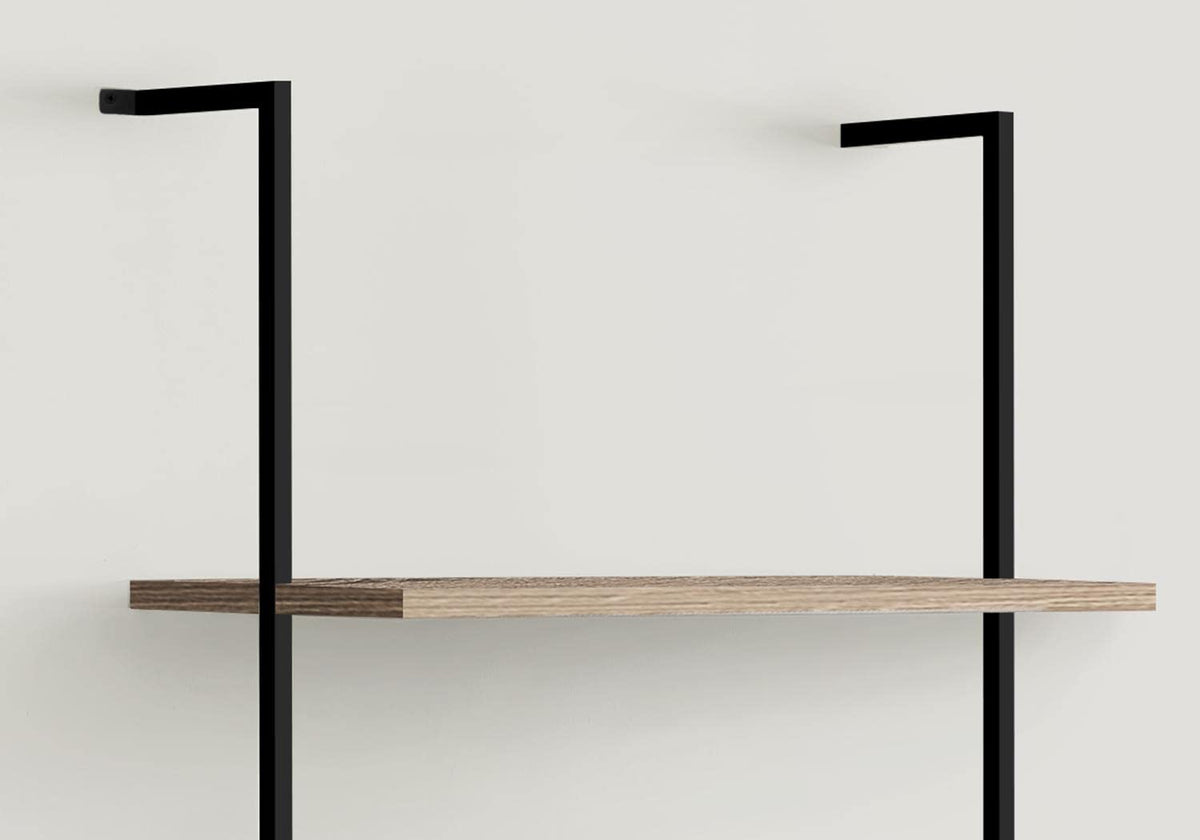 Modern urban style meets exceptional practicality with this 5-tier bookshelf, equipped with dark taupe wood look display shelves to give you the perfect home organization and storage solution. With a sturdy black metal frame in a satin finish that can mounted to any wall in your home, this bookshelf can also be mixed with any other decor style in your small home, apartment, or condo. The perfect fit for your office, living room or bedroom, this piece can be used for plants, books and all sorts of other decorations