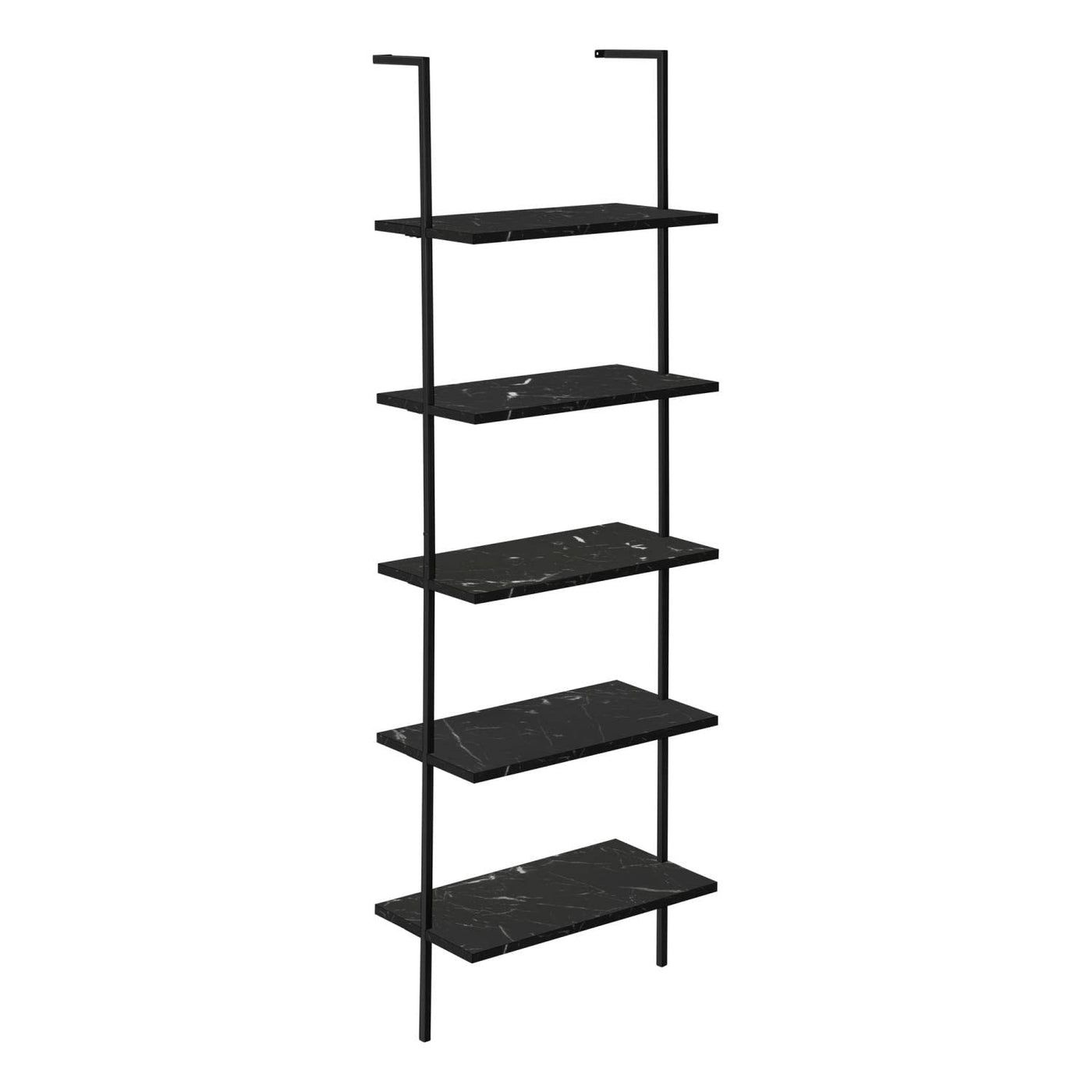Modern luxury style meets exceptional practicality with this 5-tier bookshelf, equipped with black marble look storage shelves to give you the perfect home organization and storage solution. With a sturdy black metal frame in a satin finish that can mounted to any wall in your home, this bookshelf can also be mixed with any other decor style in your small home, apartment, or condo. The perfect fit for your office, living room or bedroom, this piece can be used for plants, books and all sorts of other decorations