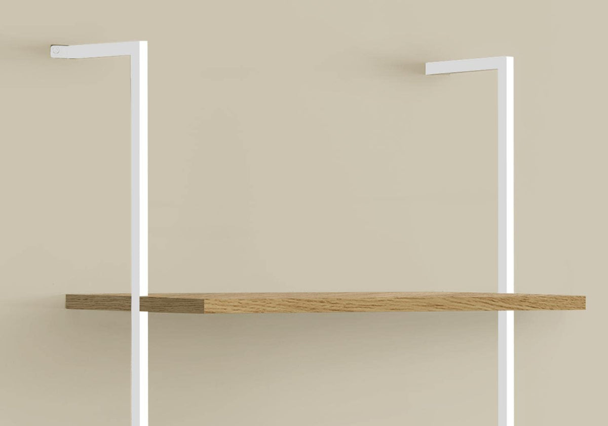 Modern urban style meets exceptional practicality with this 5-tier bookshelf, equipped with natural wood look storage shelves to give you the perfect home organization and storage solution. With a sturdy white metal frame in a satin finish that can mounted to any wall in your home, this bookshelf can also be mixed with any other decor style in your small home, apartment, or condo. The perfect fit for your office, living room or bedroom, this piece can be used for plants, books and all sorts of other decorations