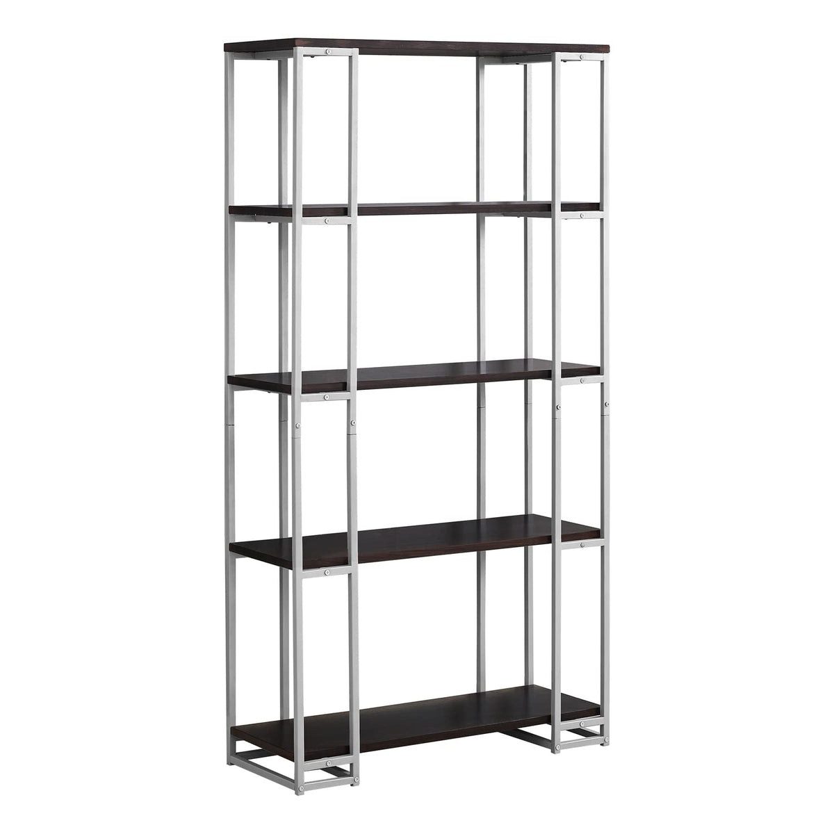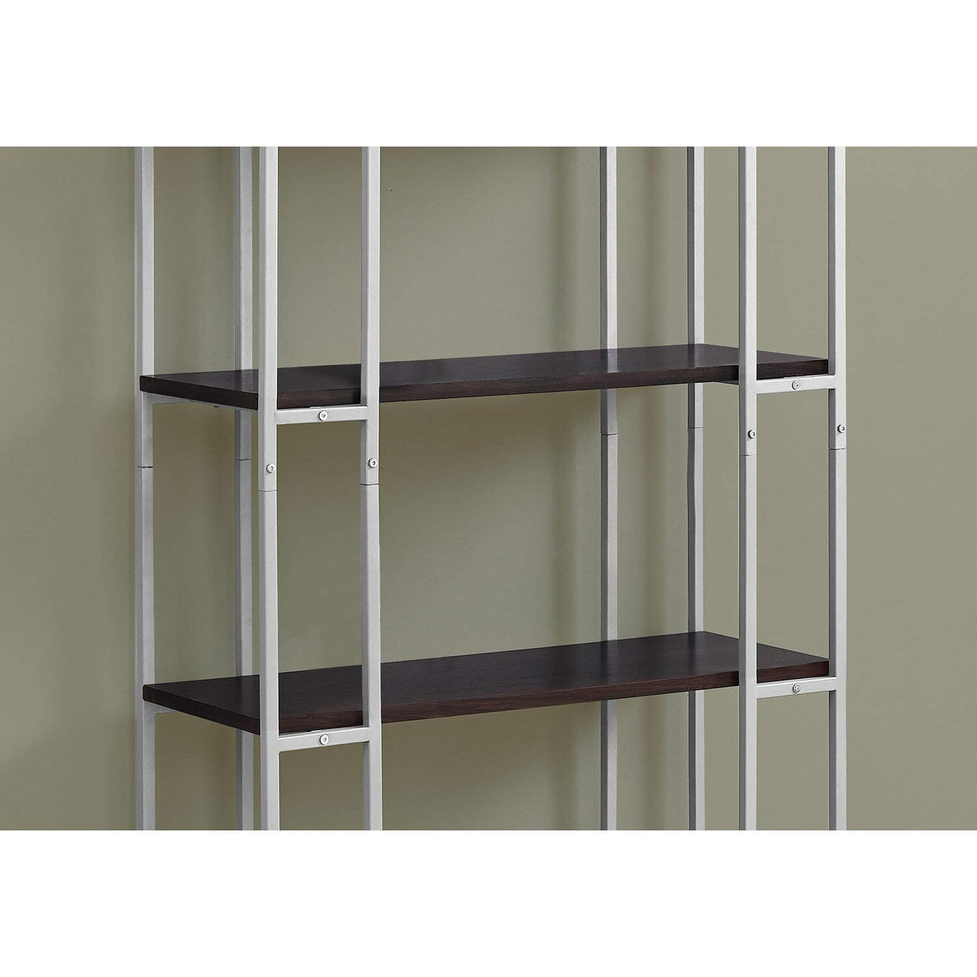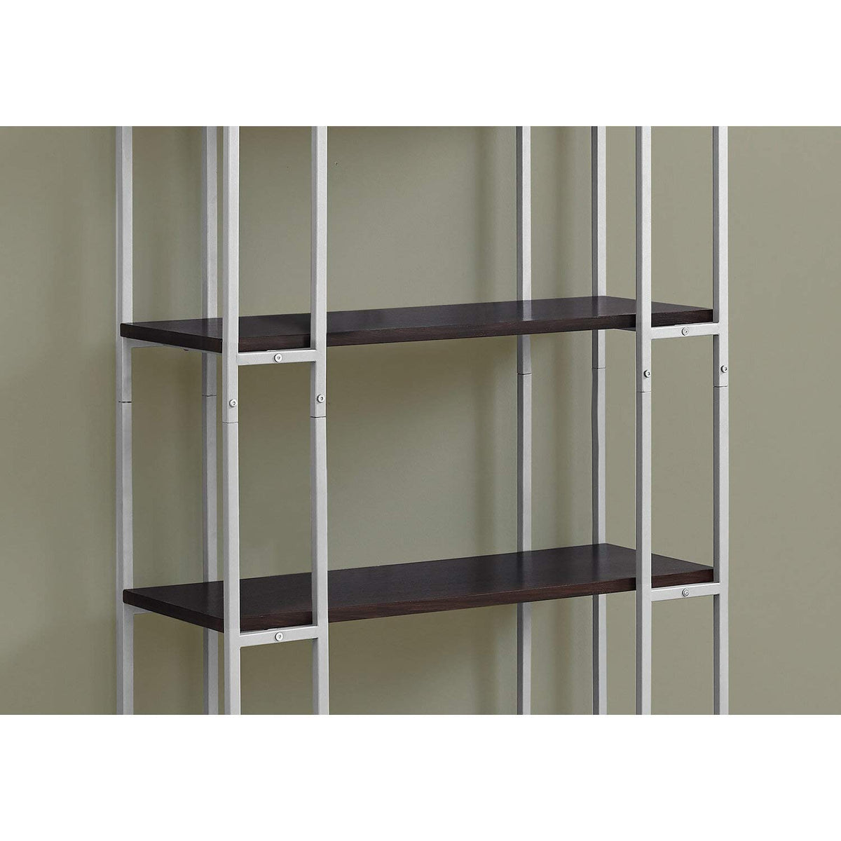 Monarch Specialties I Bookcase-60 H Silver Metal, Cappuccino