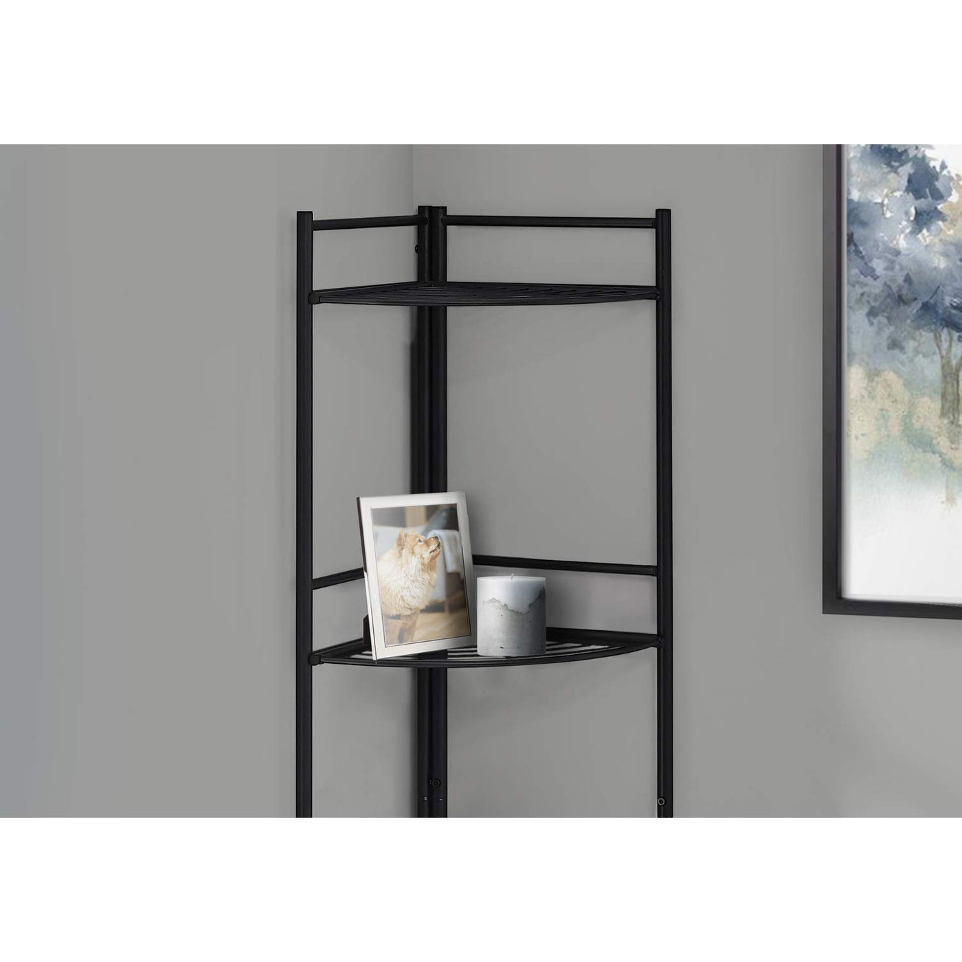 Designed to fully utilize valuable corner and vertical space in your small home, apartment, condo or even dorm room, this black metal corner shelving unit will add sophistication to your living space. Equally stunning in the kitchen, living room or bedroom, this accent piece also looks great in your office space. Use it for books, photo frames, plants or any other item you? d like to display to spice up your decor.