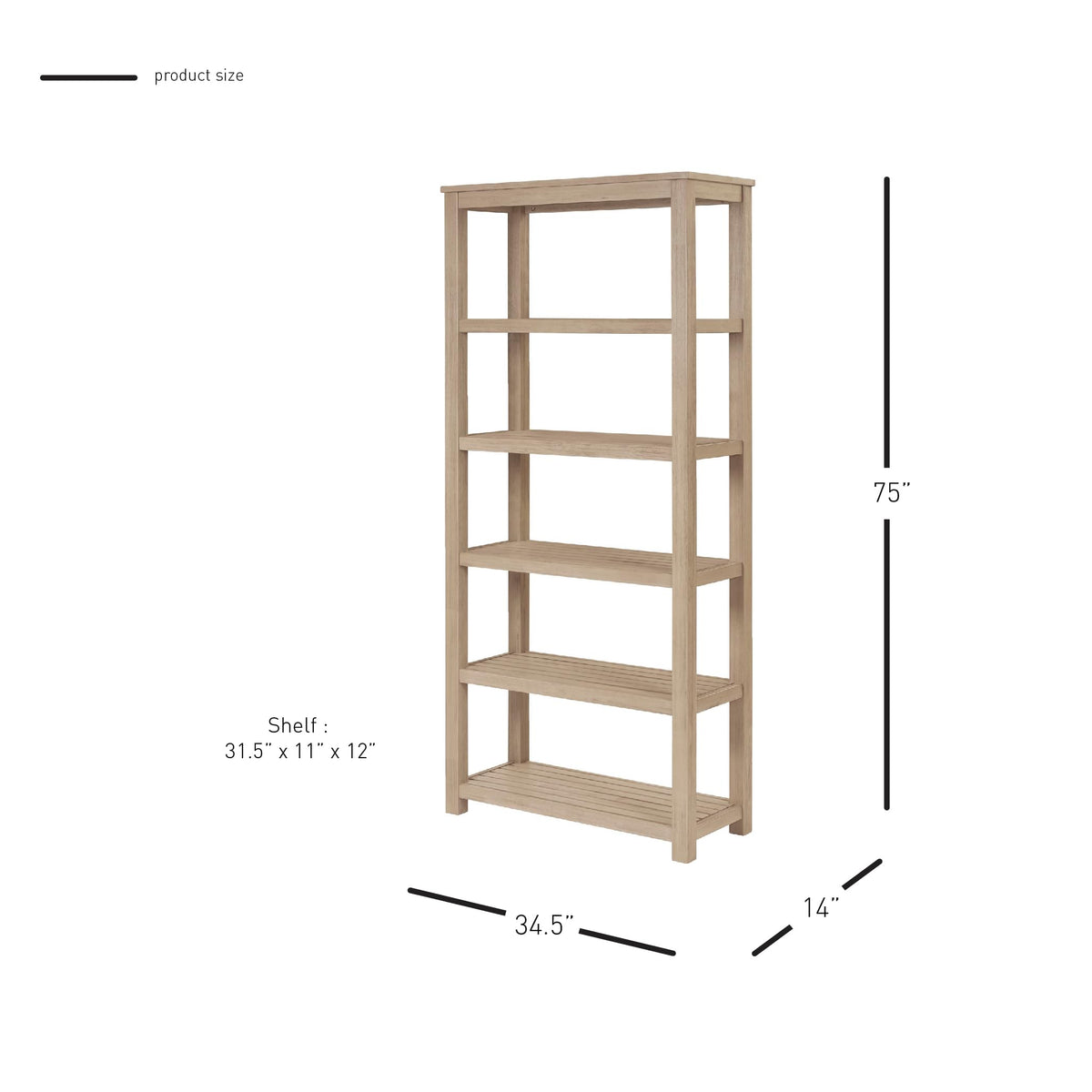 The 75" high library does double duty as a display to show off collectibles or as a pantry for kitchen items. It's refreshed in a light wood tone that strikes a balance between cozy simplicity and Japandi aesthetics. Designed to work with modern to transitional decor. Easy Assembly. Available in Drifted Sand and Amber.