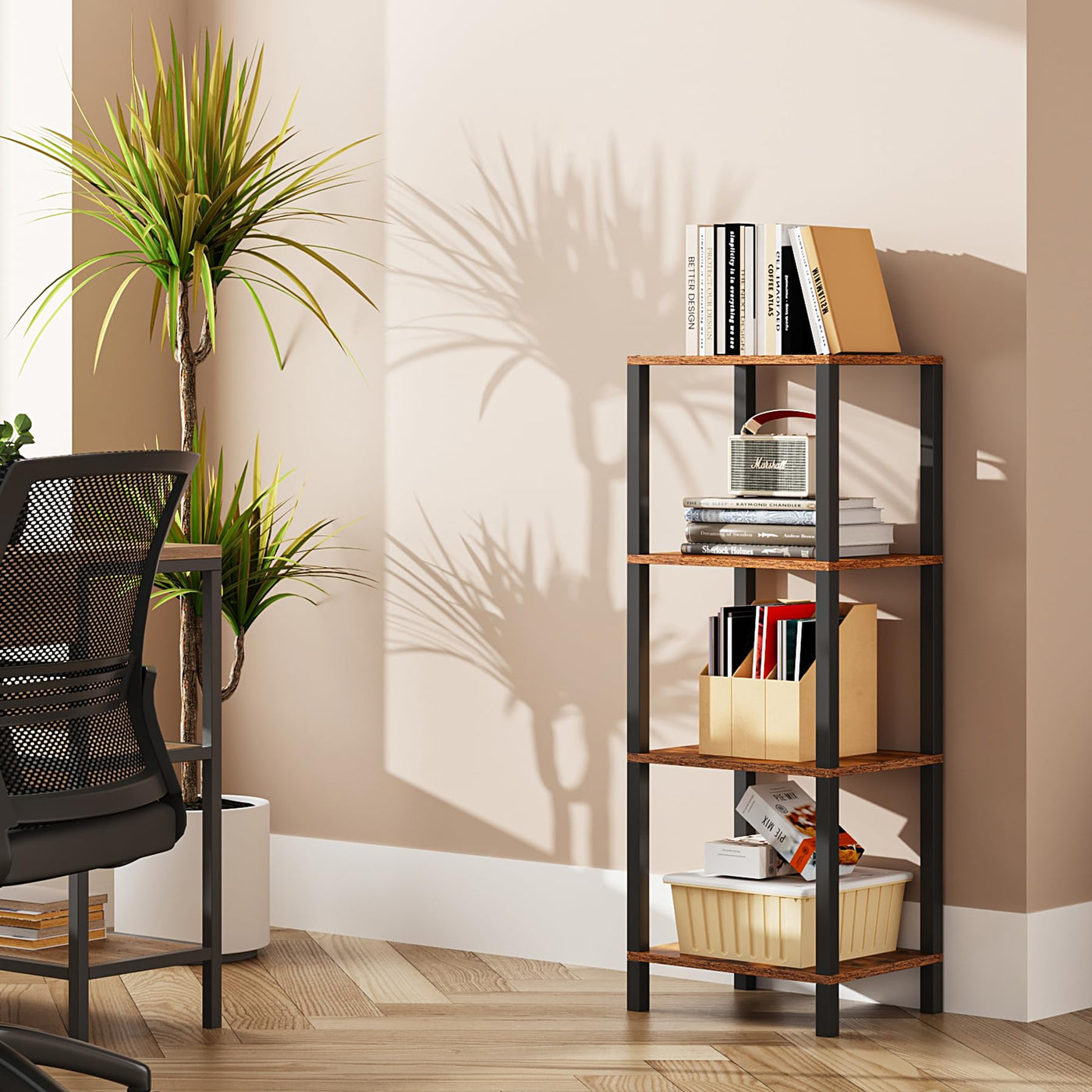 Tutotak Bookshelf, 4-Tier Tall Book Shelf, Narrow Bookcase For Small Space, Diy Stackable Bookshelf, For Living Room, Office, Study, Entryway, Industrial, Rustic Brown Bs01Bb004
