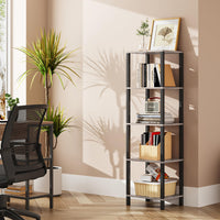 Tutotak Bookshelf, 5-Tier Tall Book Shelf, Narrow Bookcase For Small Space, Diy Stackable Bookshelf, For Living Room, Office, Study, Entryway, Industrial, Greige And Black Bs01Bg005