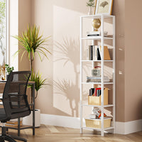 Tutotak Bookshelf, 6-Tier Tall Book Shelf, Narrow Bookcase For Small Space, 10.7 X 15 X 65.3 Inches, For Living Room, Office, Study, Entryway, Industrial Style, White Bs01Bw006