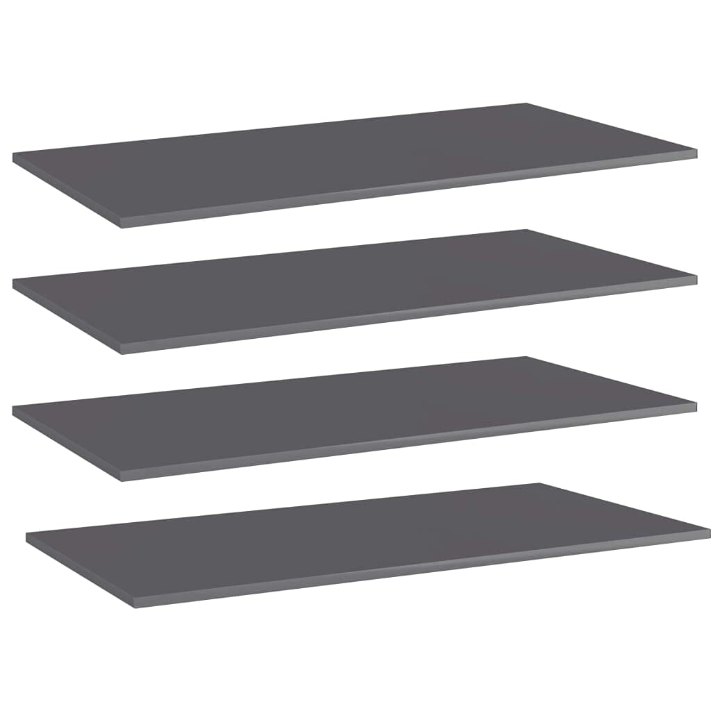 vidaXL Bookshelf Boards - Set of 4, High Gloss Gray, Engineered Wood, 39.4x19.7x0.6