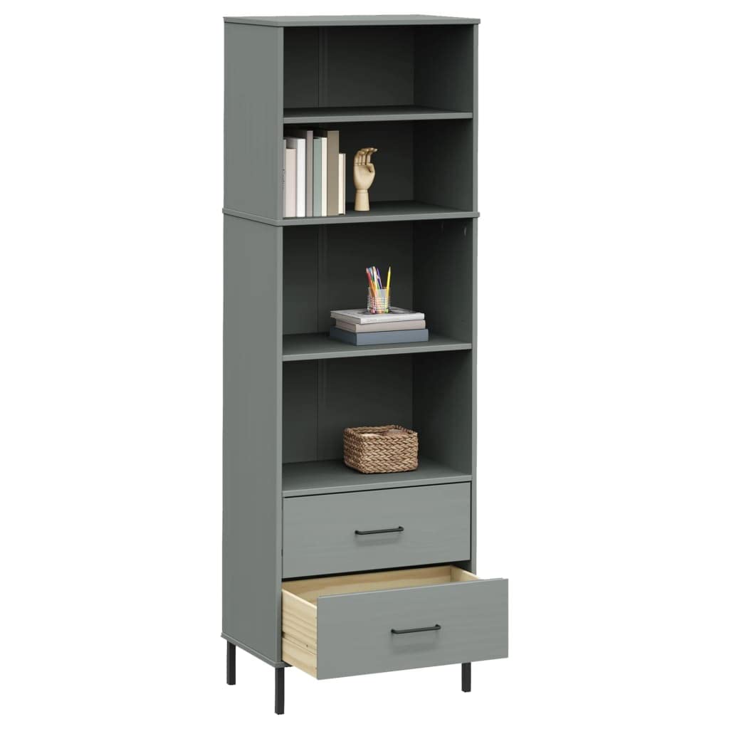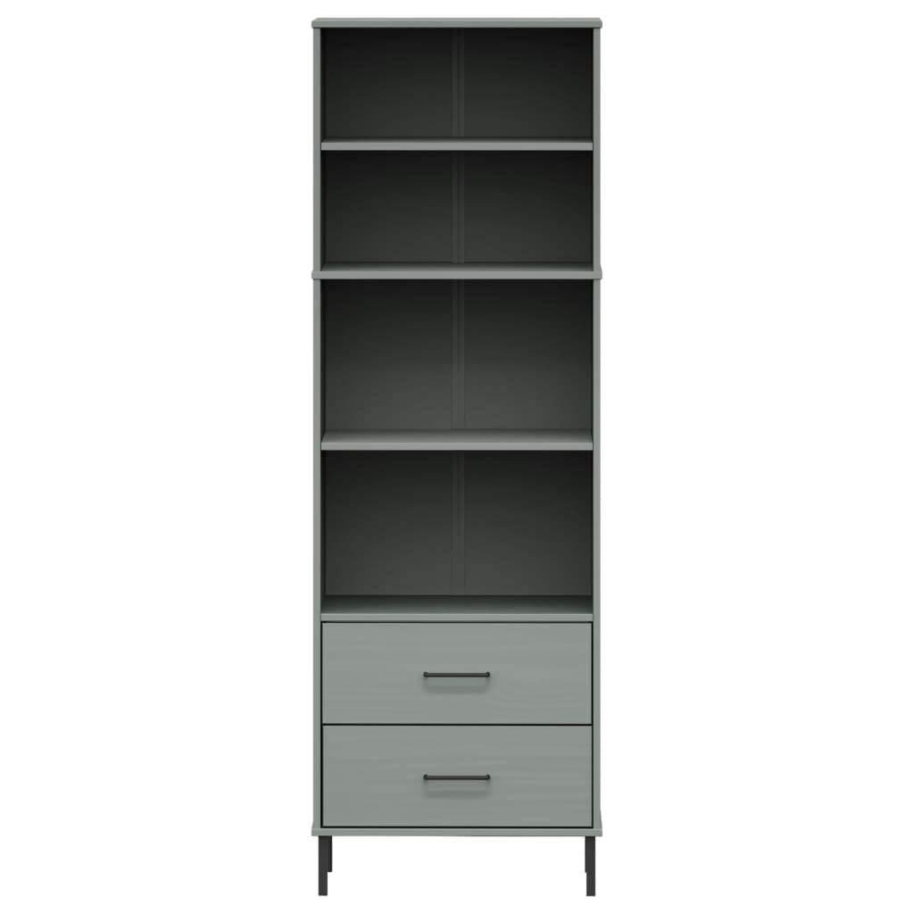 vidaXL Solid Pine Wood Bookcase with Drawers and Metal Feet - Industrial Style - Gray Finish - 23.6"x13.8"x70.9"