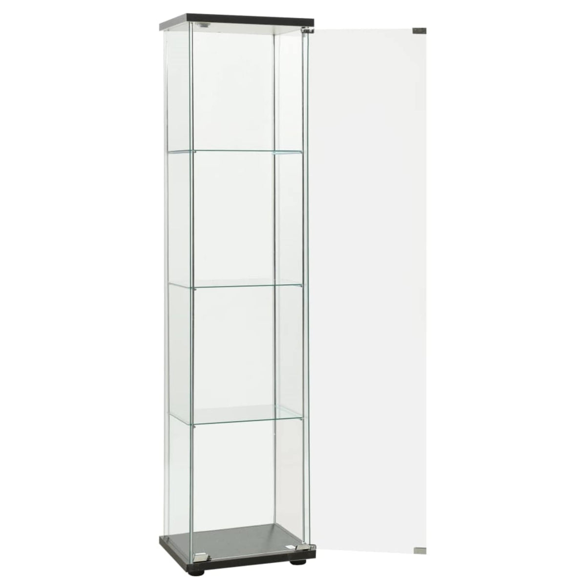 vidaXL Tempered Glass Storage Cabinet - Black & Transparent, 4-Layer Book Cabinet with Ample Storage, Easy Clean, Safety Compliant.