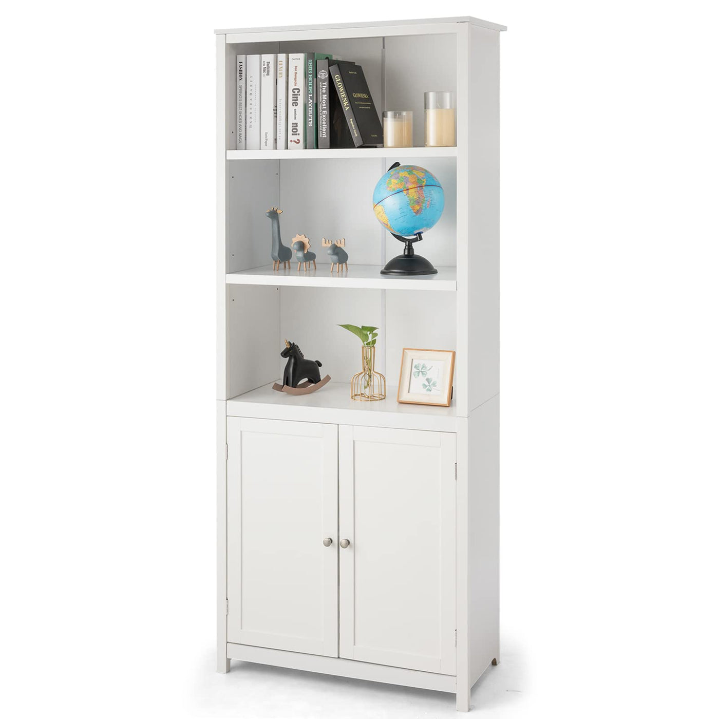 If You Are In Need Of A Tall Bookshelf With Adjustable Shelves, Our Wood Bookcase Is Just The One You Need. The Skinny Vertical Design Takes Little Floor Space While The Shelves And Cabinet Combination Offer Abundant Storage Space. It Is Perfect For Rooms With Limited Space. Strong Thickened Boards Ensure Durability In A Long Time And Anti-Toppling Devices Behind Guarantee Safety In Daily Use. Whether To Use It In The Kitchen, Living Room Or Bedroom, It Could Serve The Purpose Well. Just Get One And Make Your Room Organized!