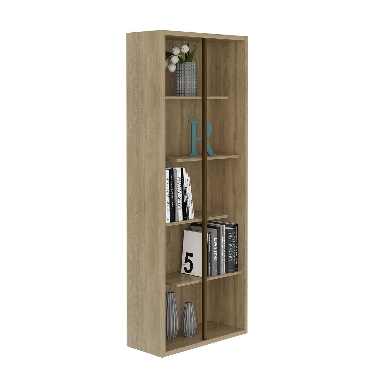 This stylish Techni Mobili 5-Tier staggered shelves wooden bookcase adds classic style to your home living area, home-Office, or even your Bedroom. This item is sold separately or as part of the Cassa Collection Set. It features a structure made of engineer wood panels with a steel vertical structural bar. It is available in 2 woodgrain colors, Walnut and Pine.